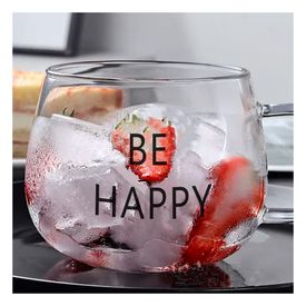 Taza de Vidrio Diseño Be Happy de Color Transparente