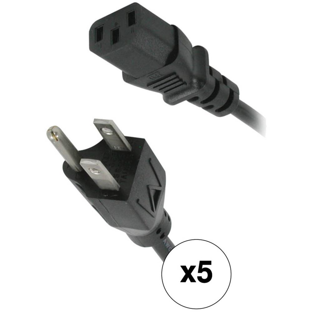C2G Cable de Alimentación Universal 18 AWG (NEMA 5-15P a IEC C13, 1', Paquete de 5) - Para Computado