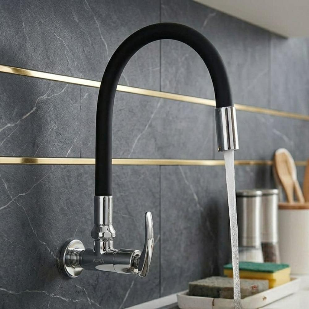Caño Flexible para Lavadero Pared Negro y Gris Acero Inoxidable