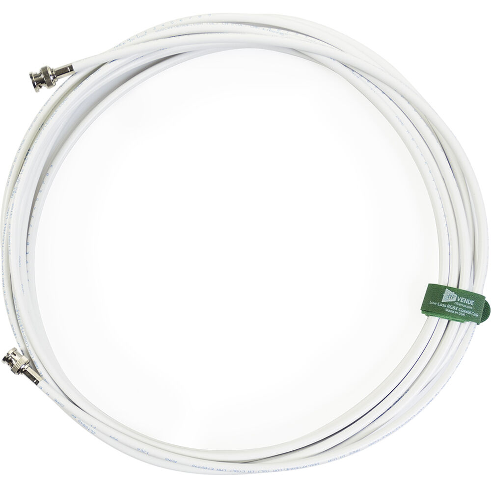 Cable de Antena Coaxial RF Venue RG8X de Baja Pérdida (Blanco, 25') con Conectores BNC y Cable de 50
