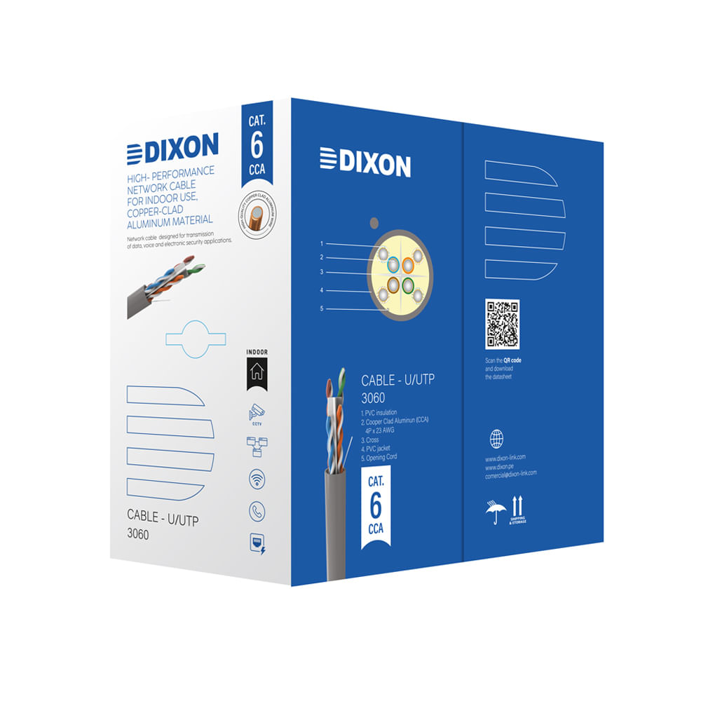 Cable de red CAT-6 Dixon 305 metros, CCA, alta velocidad para conexión estable y rápida - SKU_3060