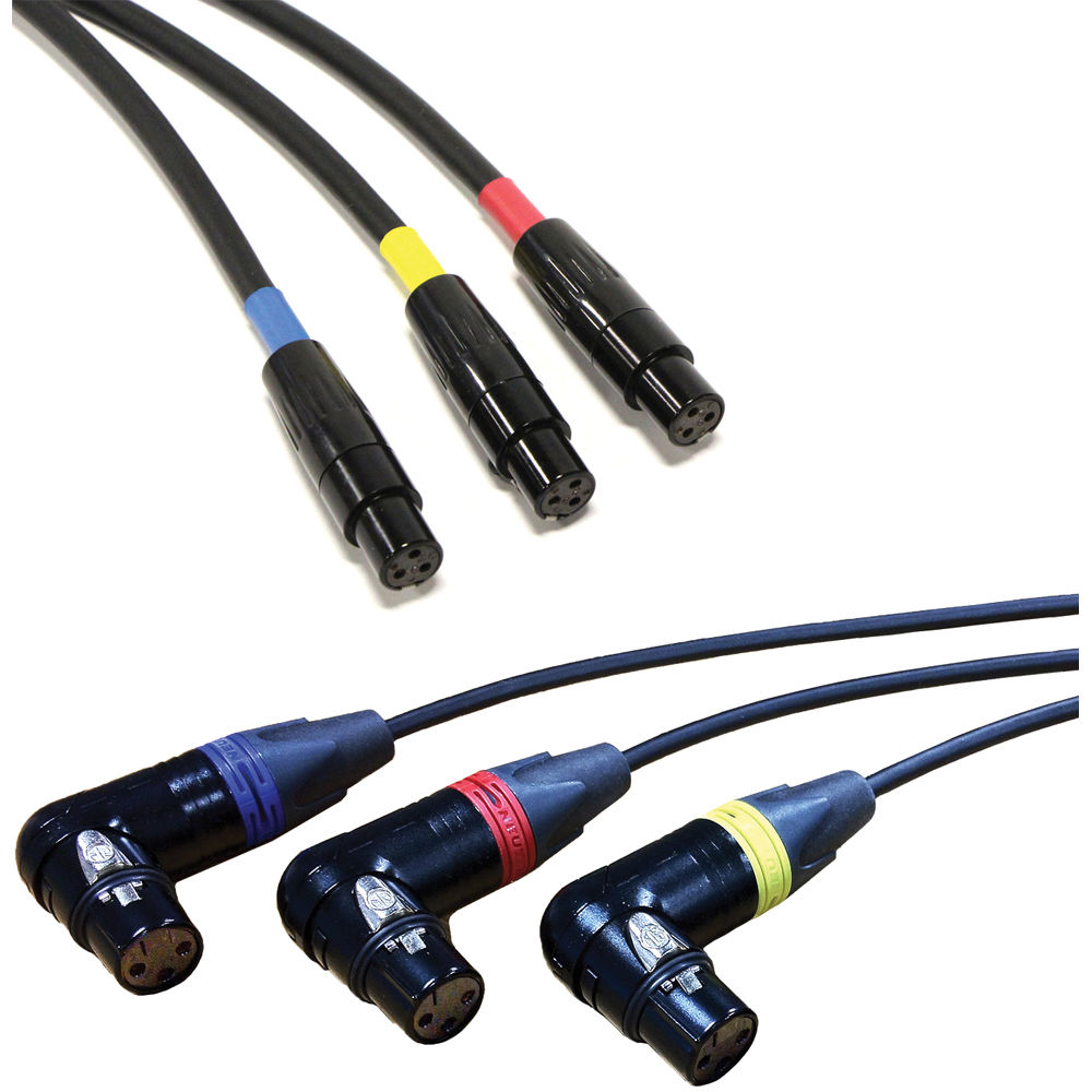 Cable Techniques Set de 3 Cables de Audio Balanceados 3-Pin XLR-F a Mini XLR-F en Ángulo Recto (Rojo