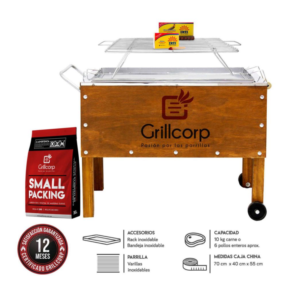 Caja China Mediana Premium + Parr Varillas Inoxidables + Carbón + Pack Inti
