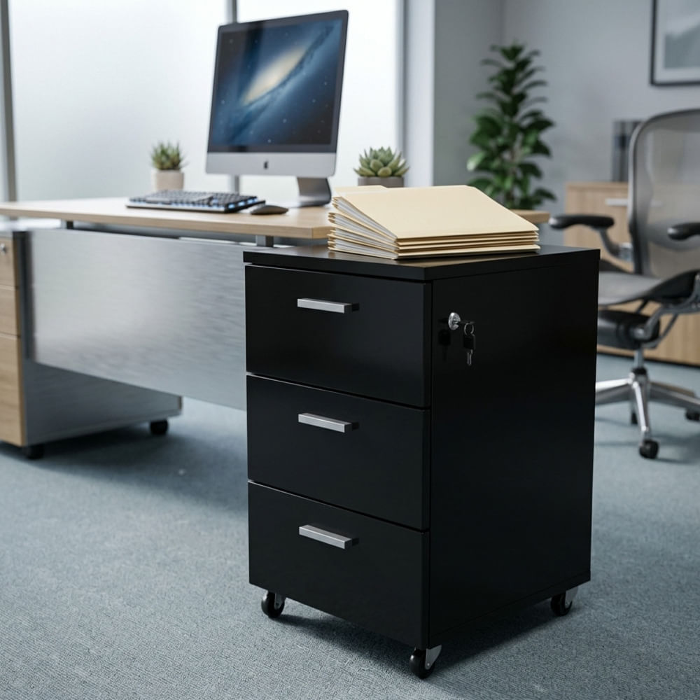 Cajonera De 3 Cajones Con Ruedas Y Chapa Negro