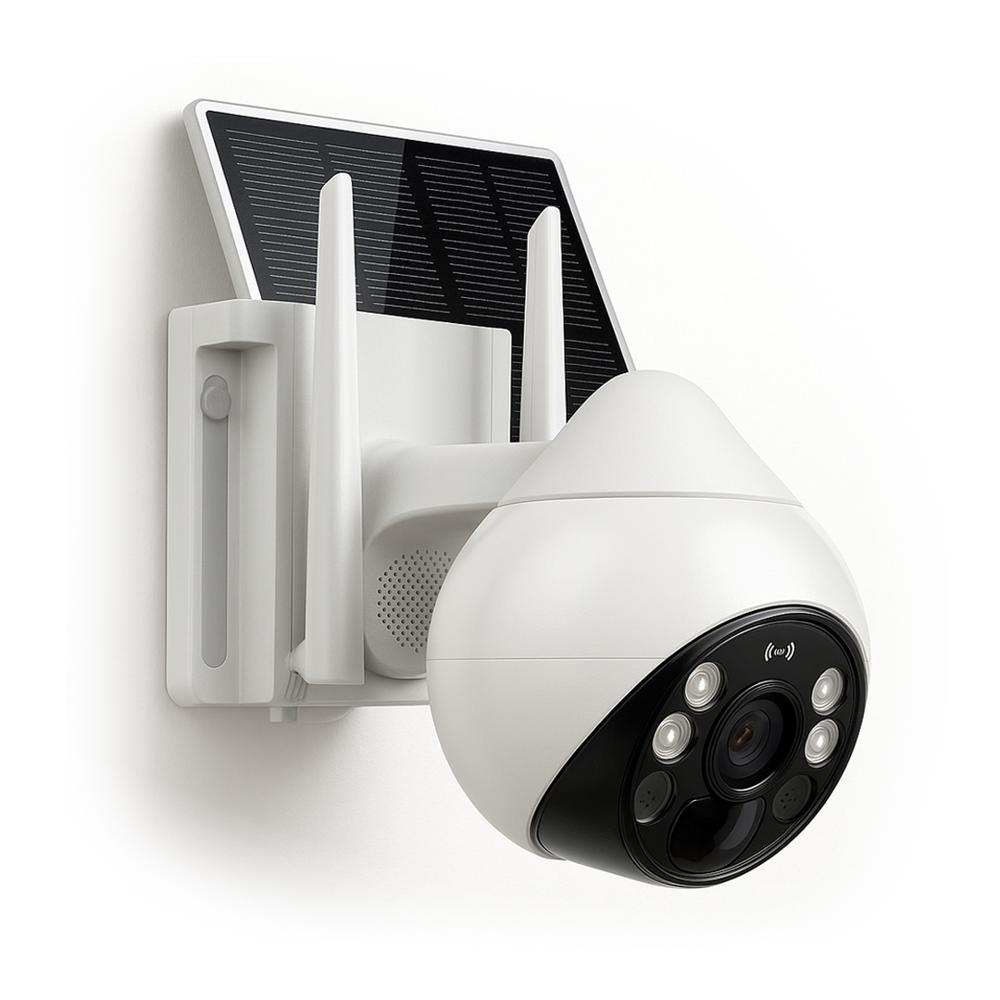 CÁMARA DE SEGURIDAD UN LENTE EXTERIOR PANEL SOLAR CON CHIP SIM 4G FHD ALARMA