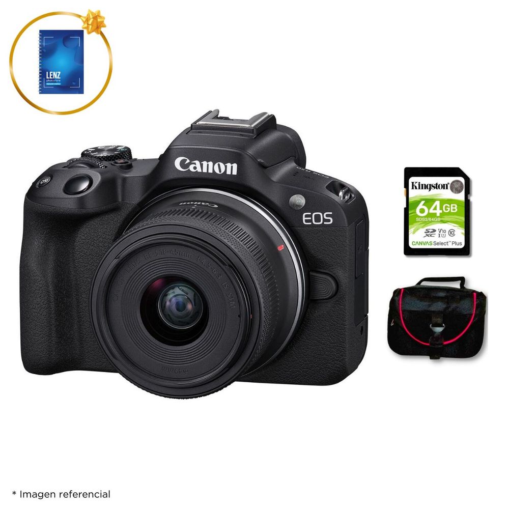 Cámara Mirrorles EOS R50 y Lente RF S 18 45mm y Kit Básico