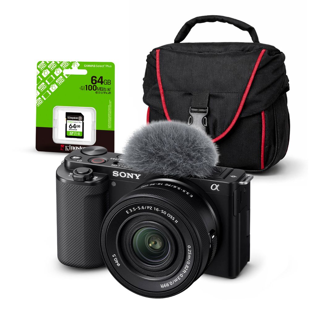 Cámara Sony ZV-E10 Mirrorless y Lente 16-50mm f35-56 II y Kit Básico de Accesorios