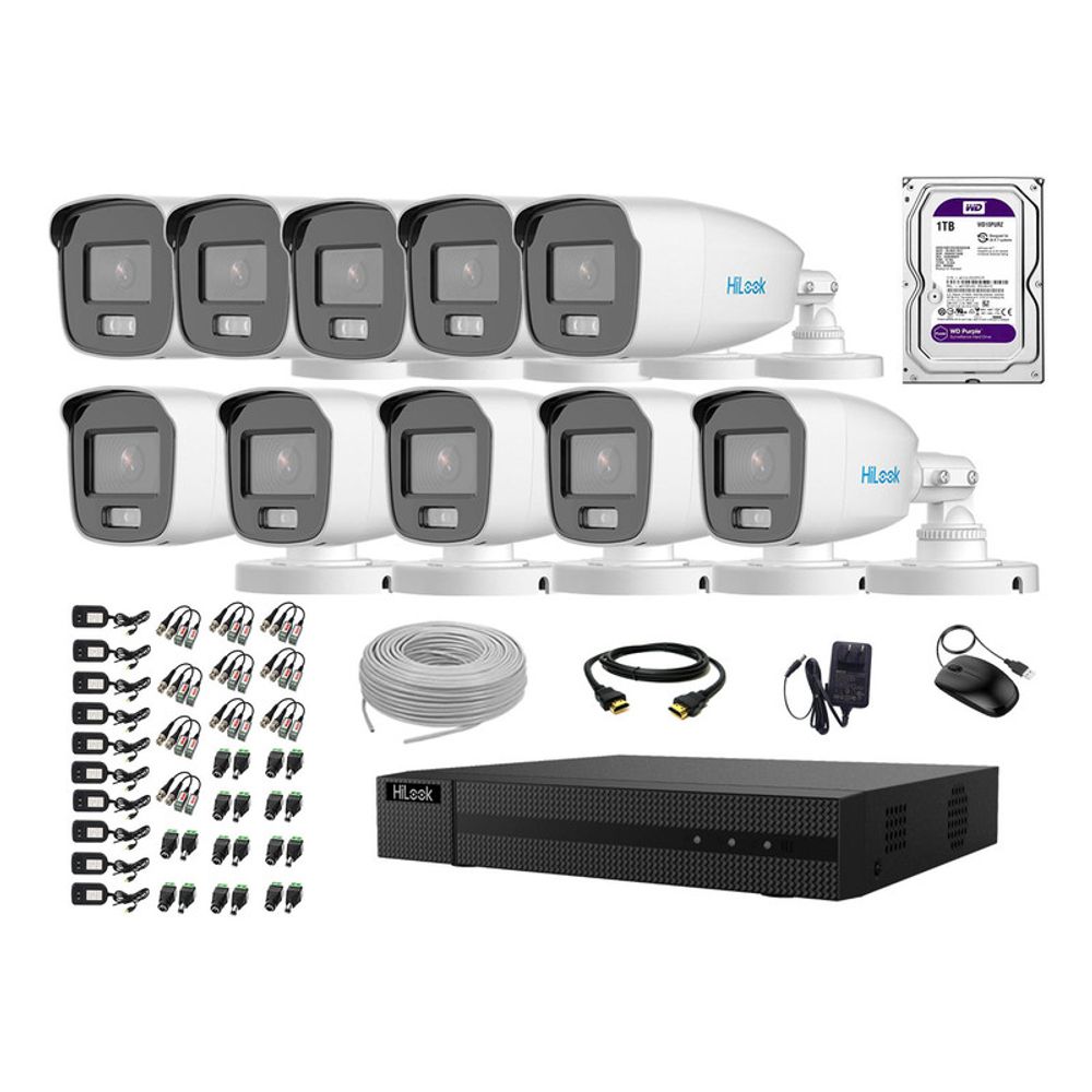 Cámaras Seguridad Exterior Kit 10 Hilook 1080p Nocturna Colorvu Lite