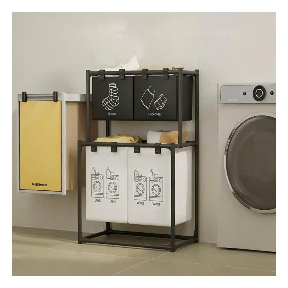 Canasto ropa sucia con 3 cestos 2 niveles negro y blanco Y+Papel Regalo