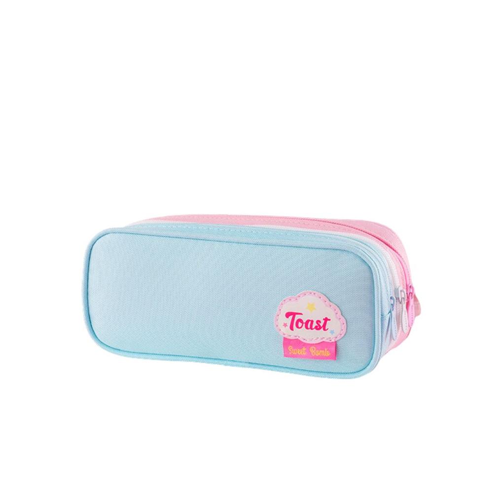 Cartuchera multicapa toast macaron – Celeste rosado
