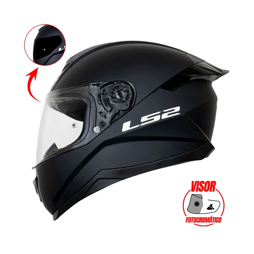 Casco con Visor Fotocromatico LS2 SOLID NEGRO MATE VPHOTOCROM FF802 Talla M-ECE2206