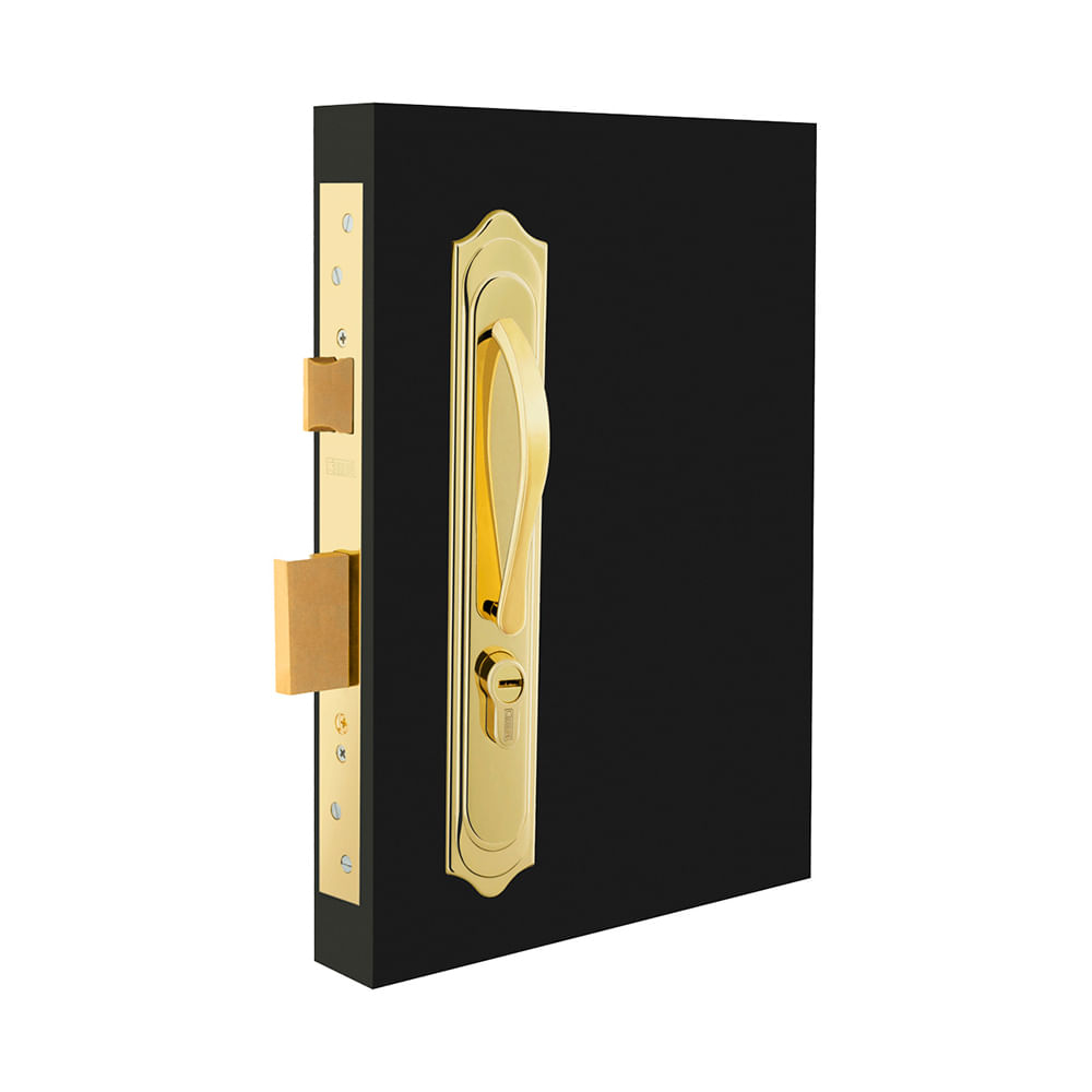 Cerradura de embutir de bronce pulido clásica p/puerta principal Izquierda