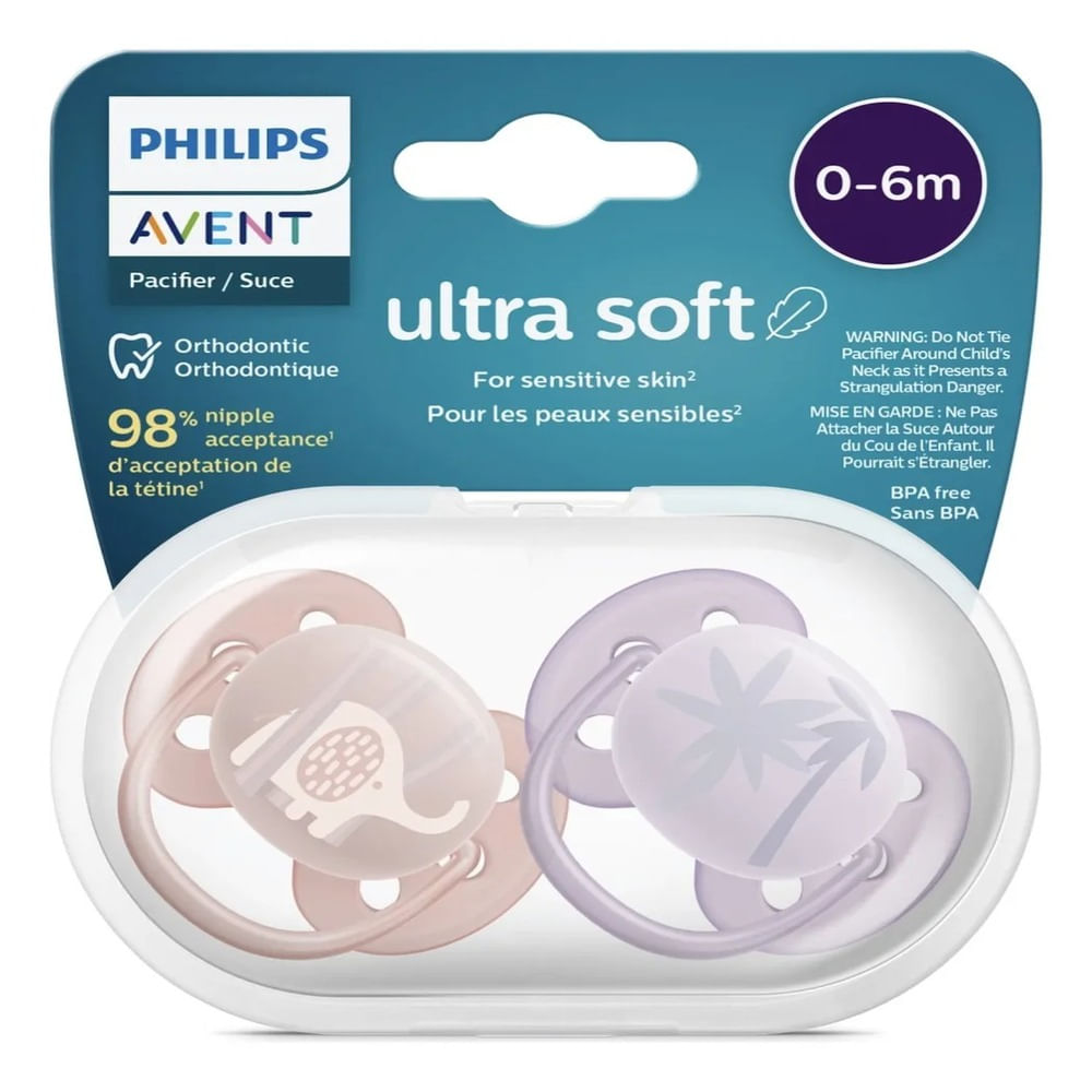 Chupón Avent 0-6 Meses Ultra Soft Pack 2 Unidades con Estuche