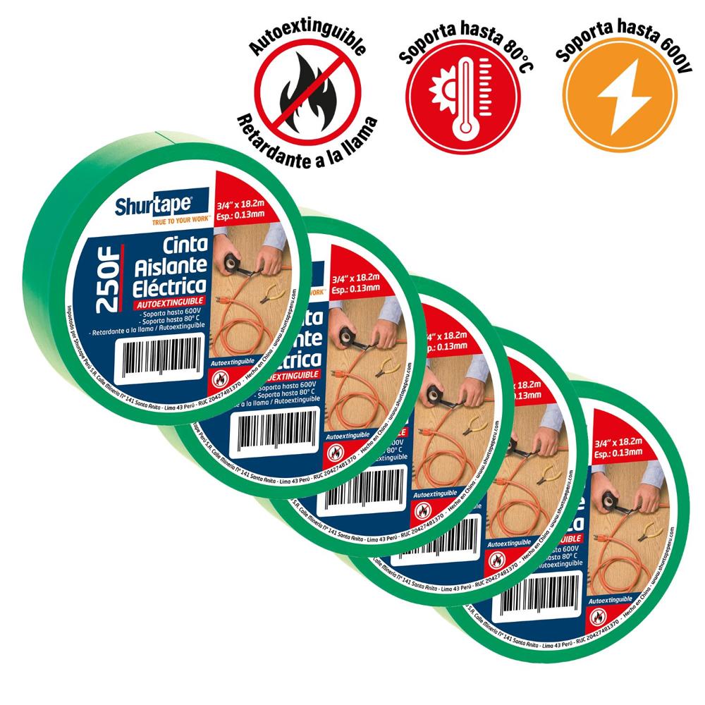 Cinta Aislante 19mm x 20 Yds Verde Pack x 5