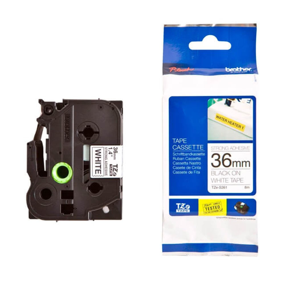Cinta Brother TZES261 1.5" (36mm) Negra sobre Blanco para Etiquetado Industrial - Alta Durabilidad - SKU_TZE-S261