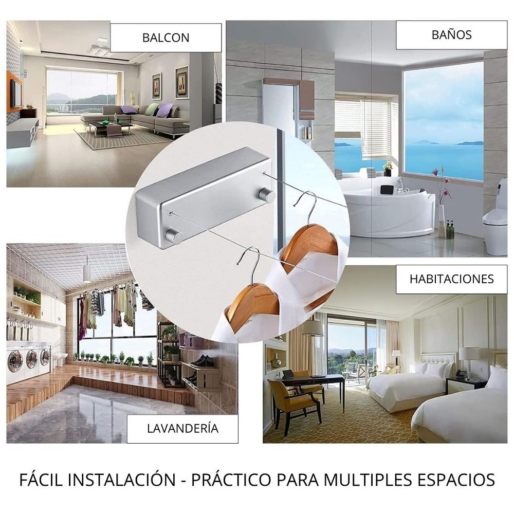 Colgador Tendedero de Ropa Retráctil de Acero Inoxidable Plata