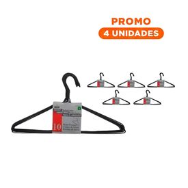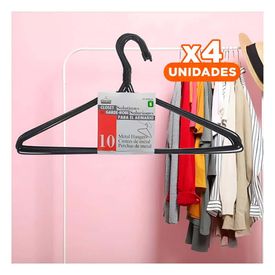 Pack4 Soporte Clasico de Alambre Negro con 10 Piezas 21x40cm para Prendas