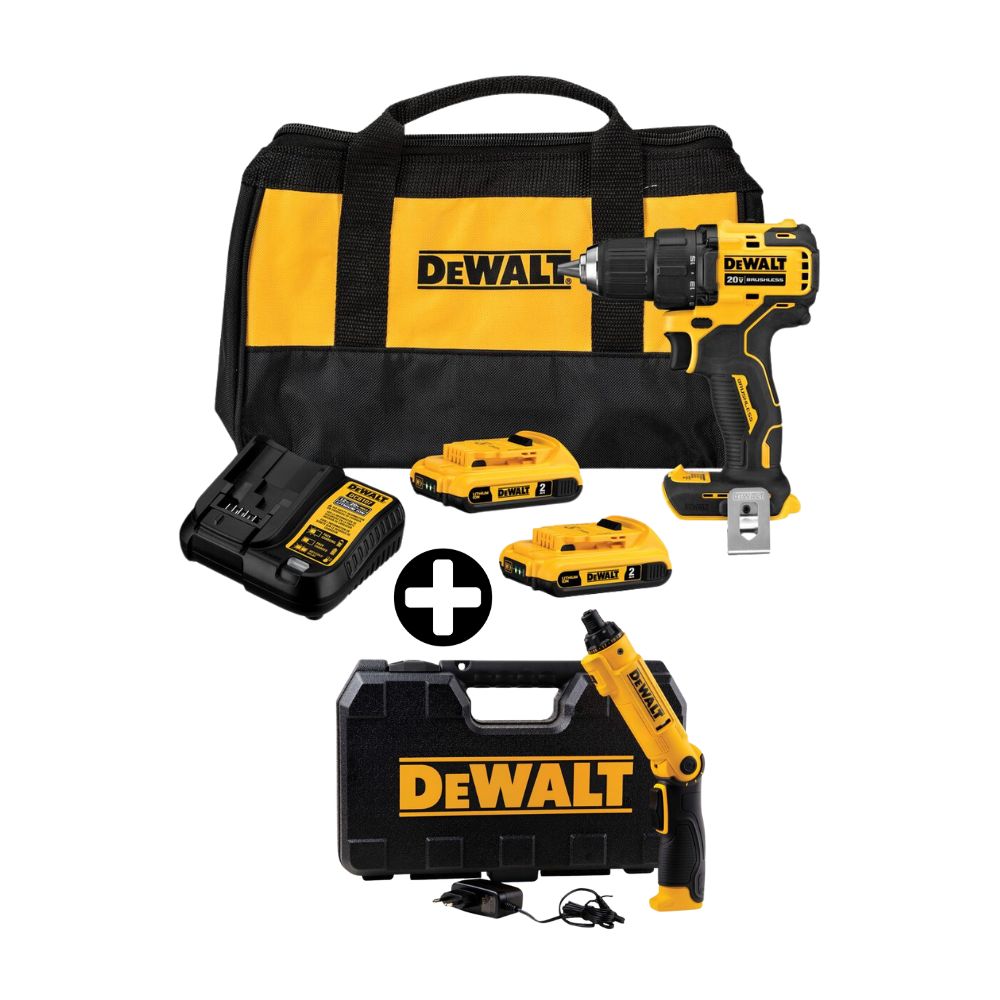 COMBO Atornillador 1/4" 8V + 45 Piezas DCF008-B2 + Taladro Atornillador 1/2" 20V DCD708D2 Dewalt