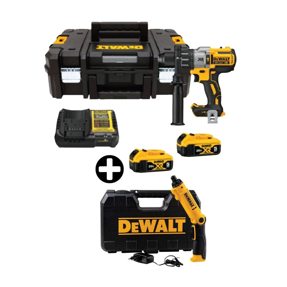 COMBO Atornillador 1/4" 8V + 45 Piezas DCF008-B2 + Taladro DCD996P2T-B2 20v-3v + 2 Bateria 5Ah + Maleta Tstack Dewalt