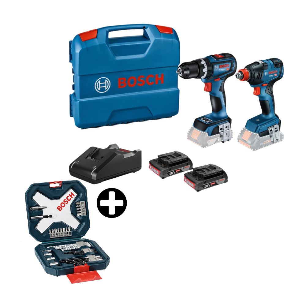 COMBO Bosch: Taladro percutor GSB-90C 18V + Llave de impacto GDX 18V-200 + Set de Brocas Xline 34 piezas