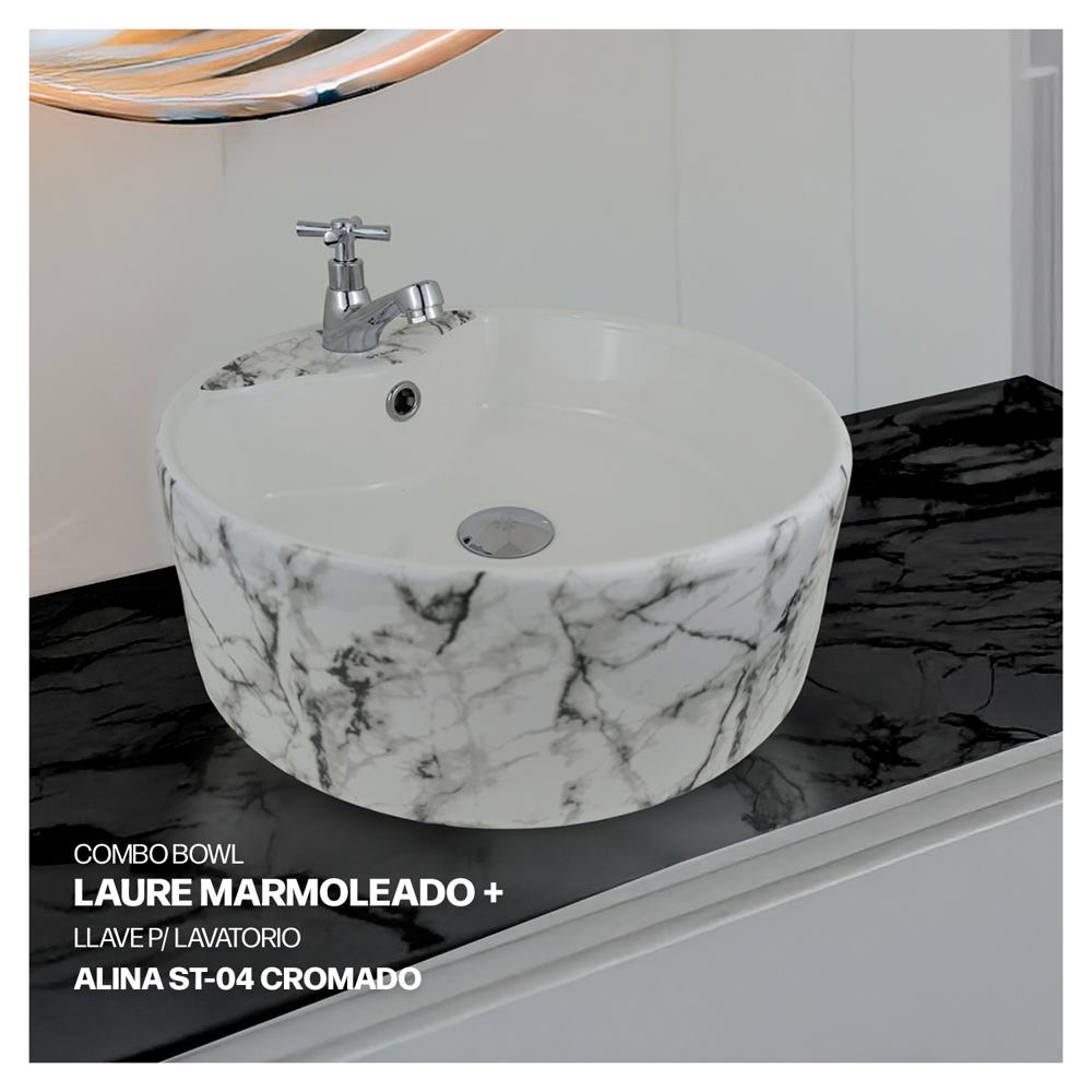 Combo Bowl Laure Marmo +Llave P/Lavatorio Alina ST-04 + Desagüe Pop Up C/Trampa Corrugada Stone