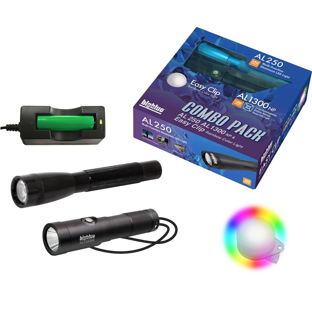 Combo de Luces de Buceo Bigblue AL1300NP y Black AL250 con Clip Arcoíris