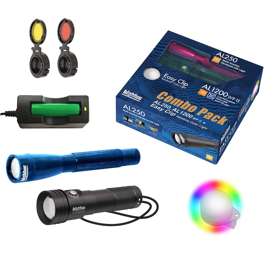 Combo de Luces de Buceo Bigblue AL1300WP y Blue AL250 con Clip Arcoíris