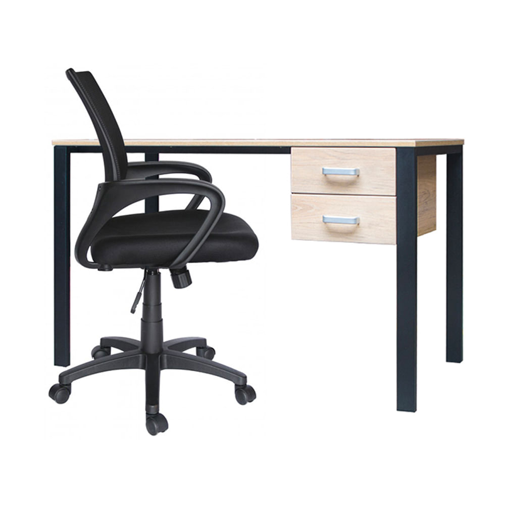 Combo Escritorio Krona Con Cajonera 120X60 Rovere Base Negro + 1 Silla Habana Giratoria Ziyaz