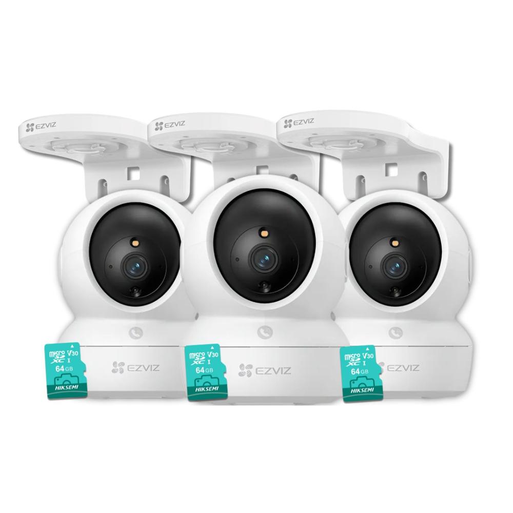 Combo Ezviz 3 Cámaras H6c 3mp+3 Sd64gb+ 3 Soporte De Cámara Blanco