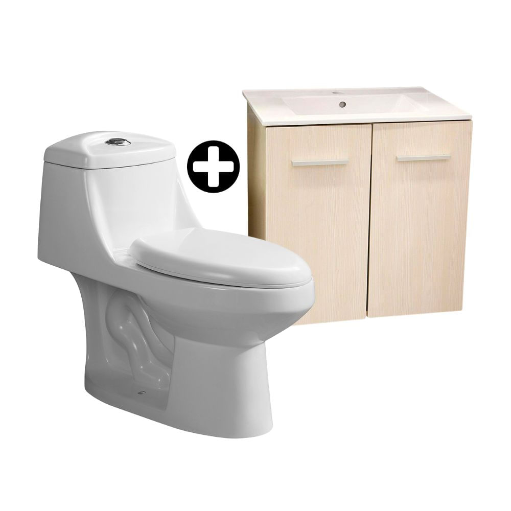 COMBO Inodoro One Piece Orange Índigo Blanco + Vanitorio + Lavatorio Orange Apolo MDP Beige