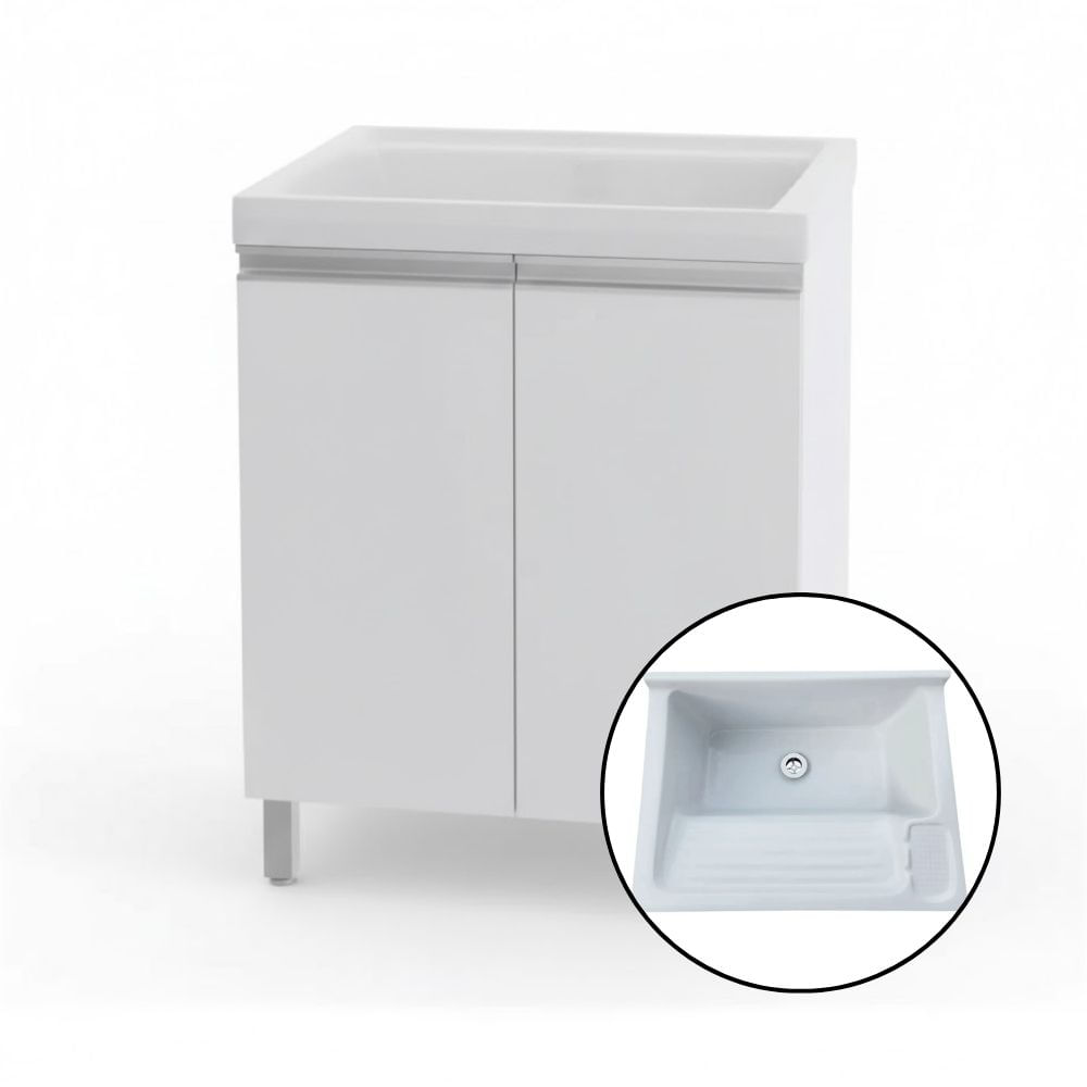 COMBO Mueble bajo para lavandería Orange + Lavadero Fibra De Vidrio 60x45cm con Ángulos Future Marble