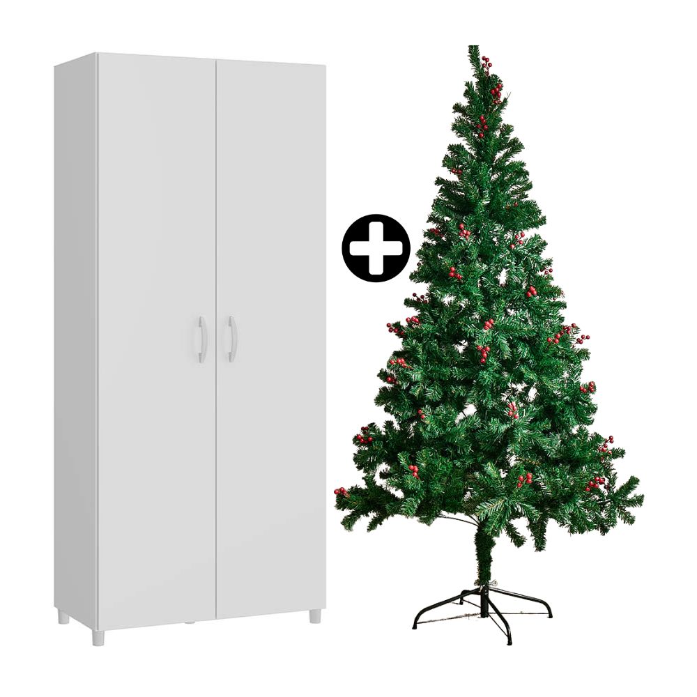 COMBO Orange: Mueble despensero Dalia MDP 80x182cm Blanco + Árbol de Navidad con Berries 210cm con 864 Ramas