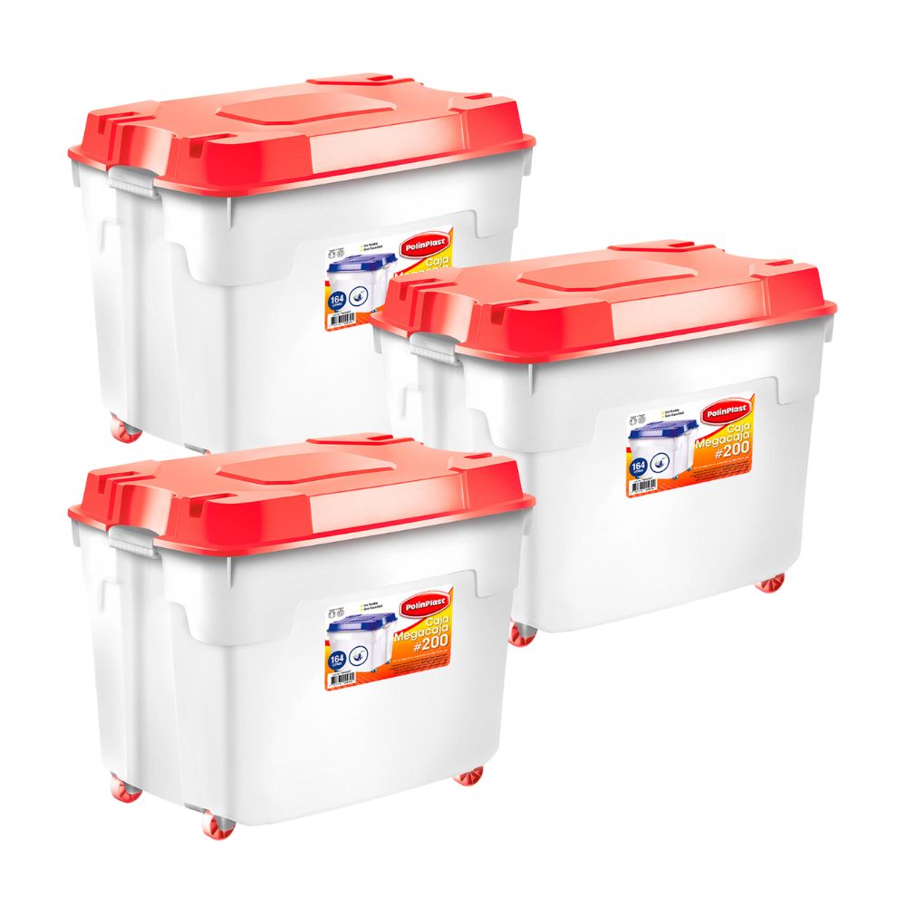 Combo Polinplast: 3 Cajas Organizadora Plástica con Ruedas #200 Roja