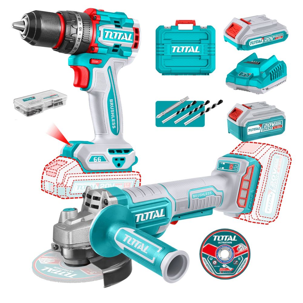 Combo Taladro Percutor 60nm + Amoladora 4½" Industrial Total TCKLI20273