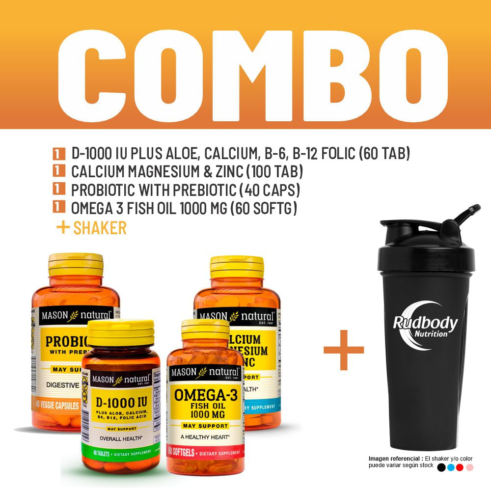 Combo Vitaminas Mason - D1000 Iu,Calcium,B6,B12 +Calcium Magnesiu&Zinc +Probio Prebio+Omega3 +Shaker