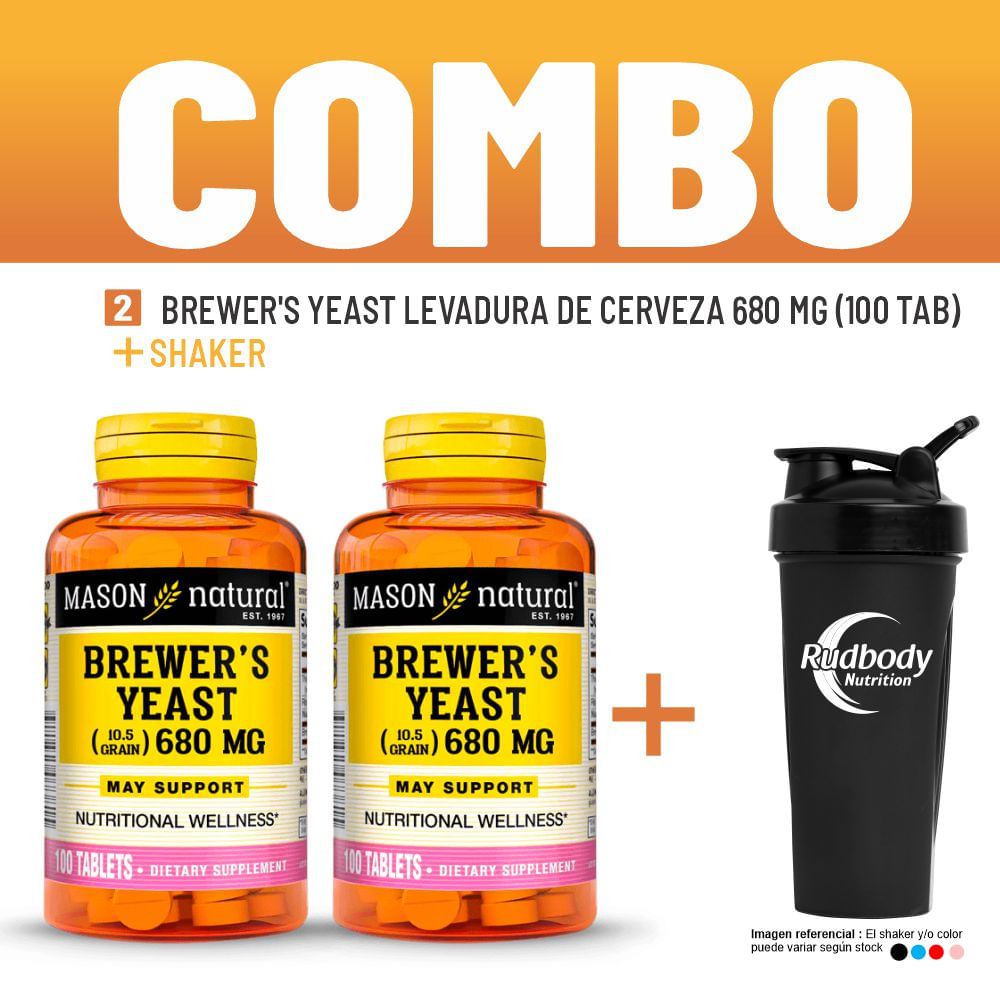 Combo Vitaminas Mason Natural - 2 Brewer'S Yeast Levadura De Cerveza 680 Mg (100 Tab) + Shaker
