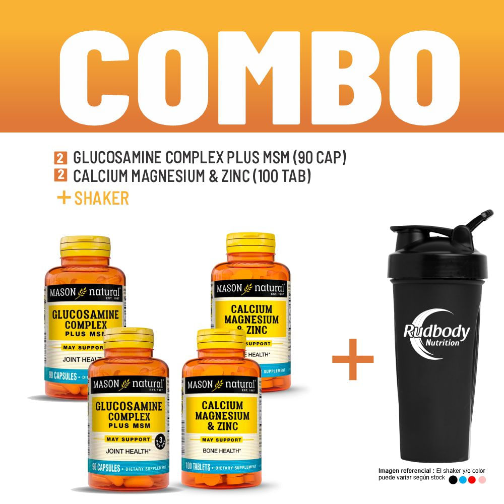 Combo Vitaminas Mason Natural - 2 Glucosamine Complex Plus Msm + 2 Calcium Magnesium & Zinc + Shaker