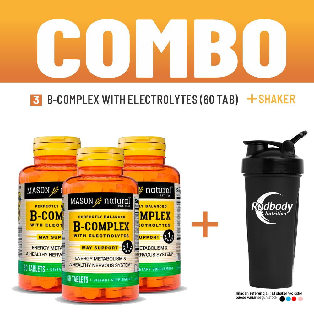 Combo Vitaminas Mason Natural - 3 B-Complex With Electrolytes (60 Tab) + Shaker