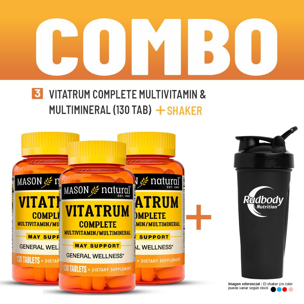 Combo Vitaminas Mason Natural - 3 Vitatrum Complete Multivitamin & Multimineral (130 Tab) + Shaker
