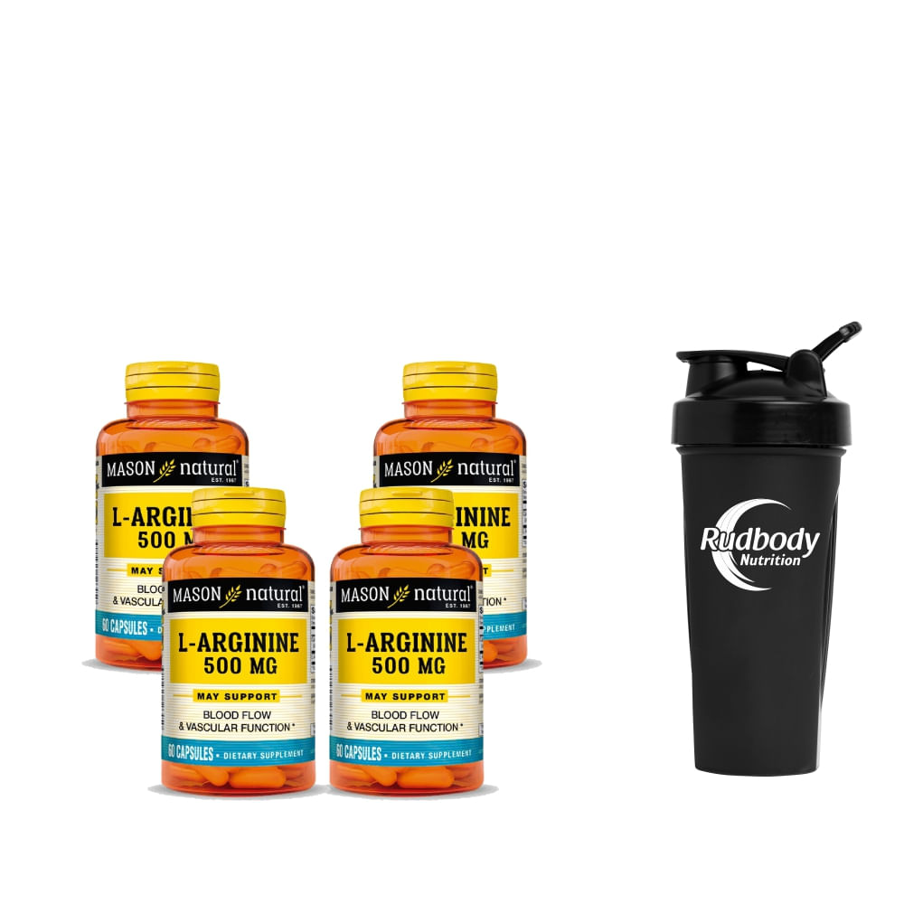 Combo Vitaminas Mason Natural - 4 Arginine 500 Mg (60 Cap) + Shaker