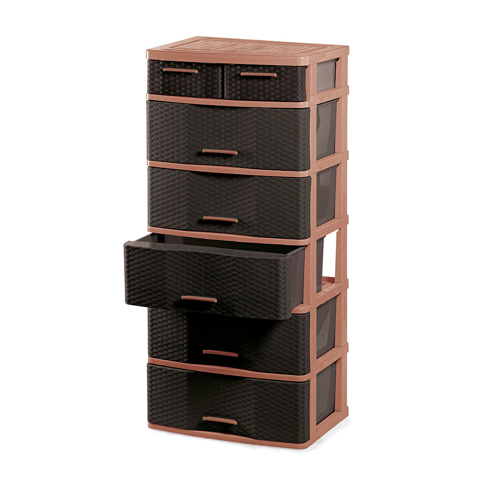 Cómoda Comodina Mimbre Ratán #6 Cerezo Marrón Polinplast