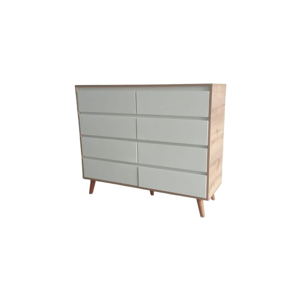 Cómoda Vintaje Duna de 8 Cajones con Frente Blanco (Melamina)