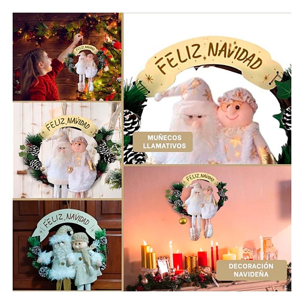 Corona Navideña con Dos Muñecos Grandes de Casa en Blanco