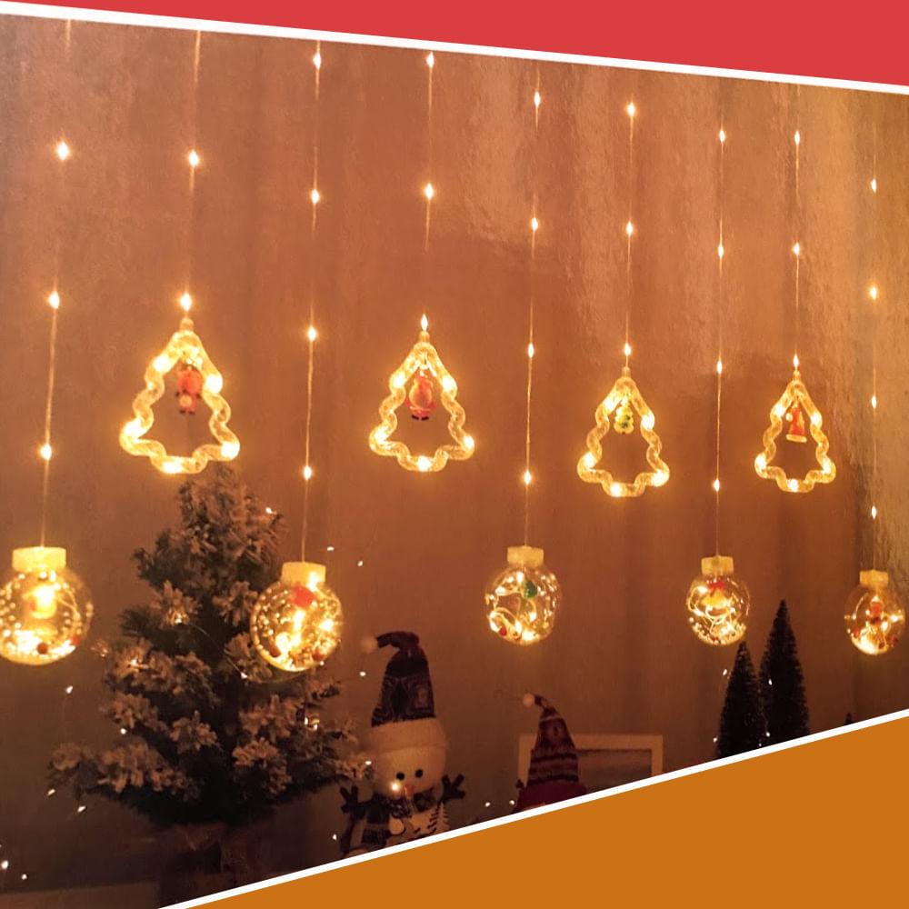 Cortina de Luces Navideña Guirnalda Decorativa Esfera con Árbol Campana 3m