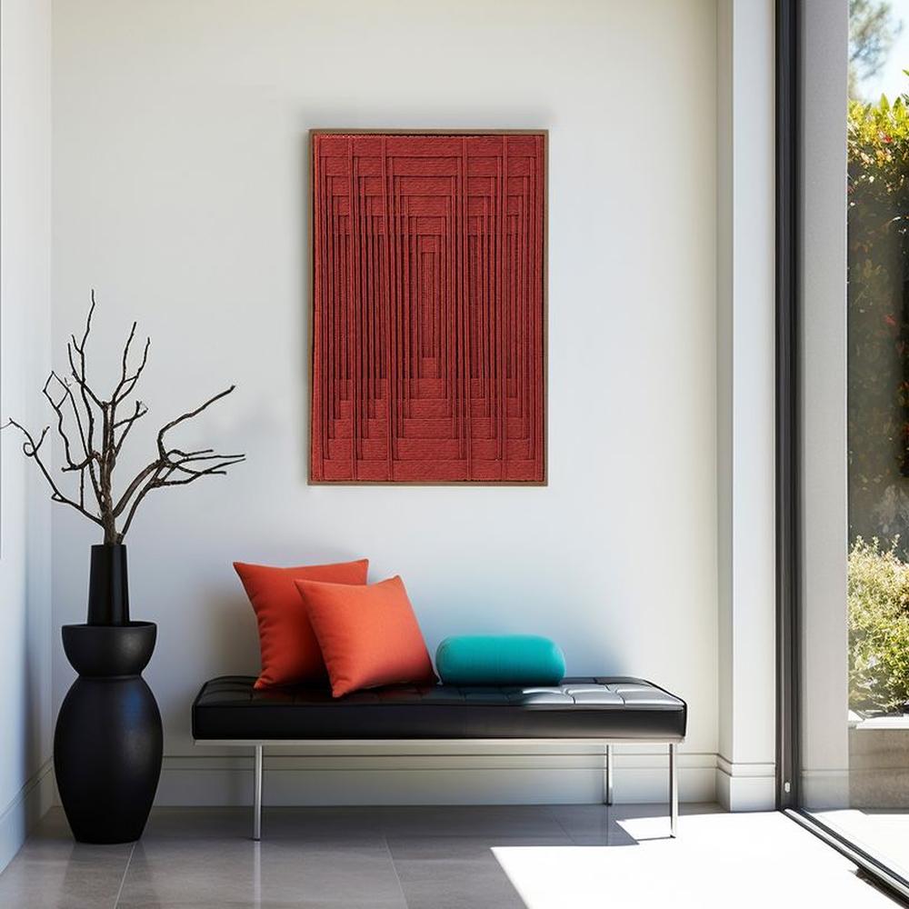 Cuadro Charlott lienzo trenzado con hilos en color ladrillo