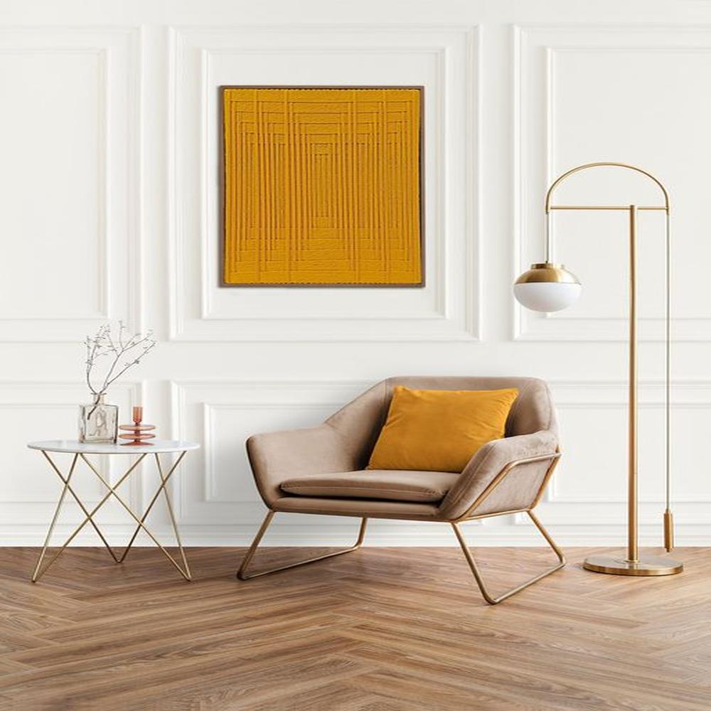 Cuadro Charlott lienzo trenzado con hilos en color maíz