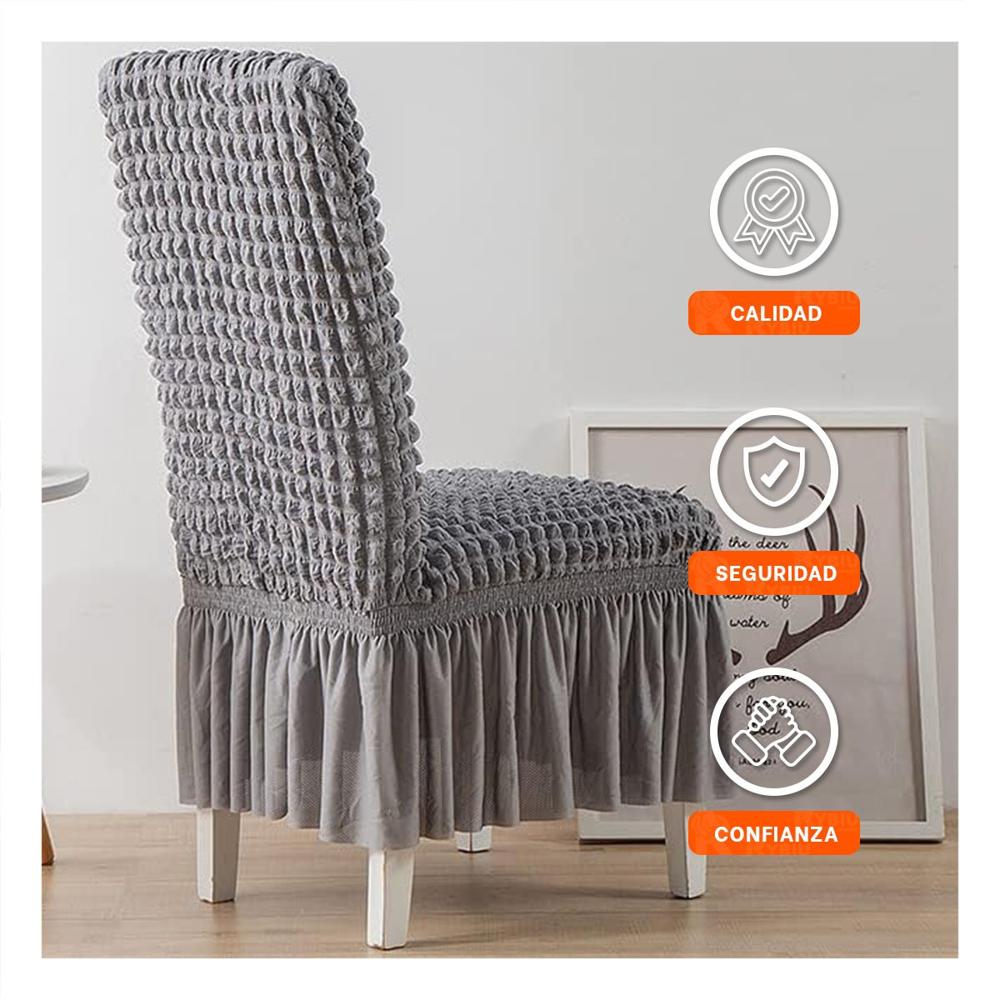 Cubierta para Silla Elastica Color Plomo con Patron de Burbujas Cuadradas Y+Papel Regalo