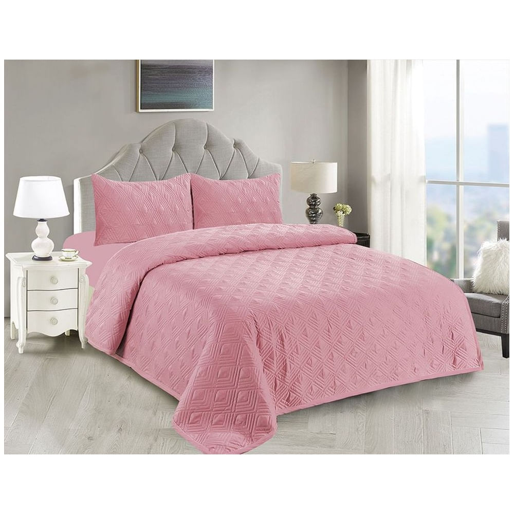 Cubrecama + Juego de sábanas 2 plazas 100% Algodón - ROSADO Rosado