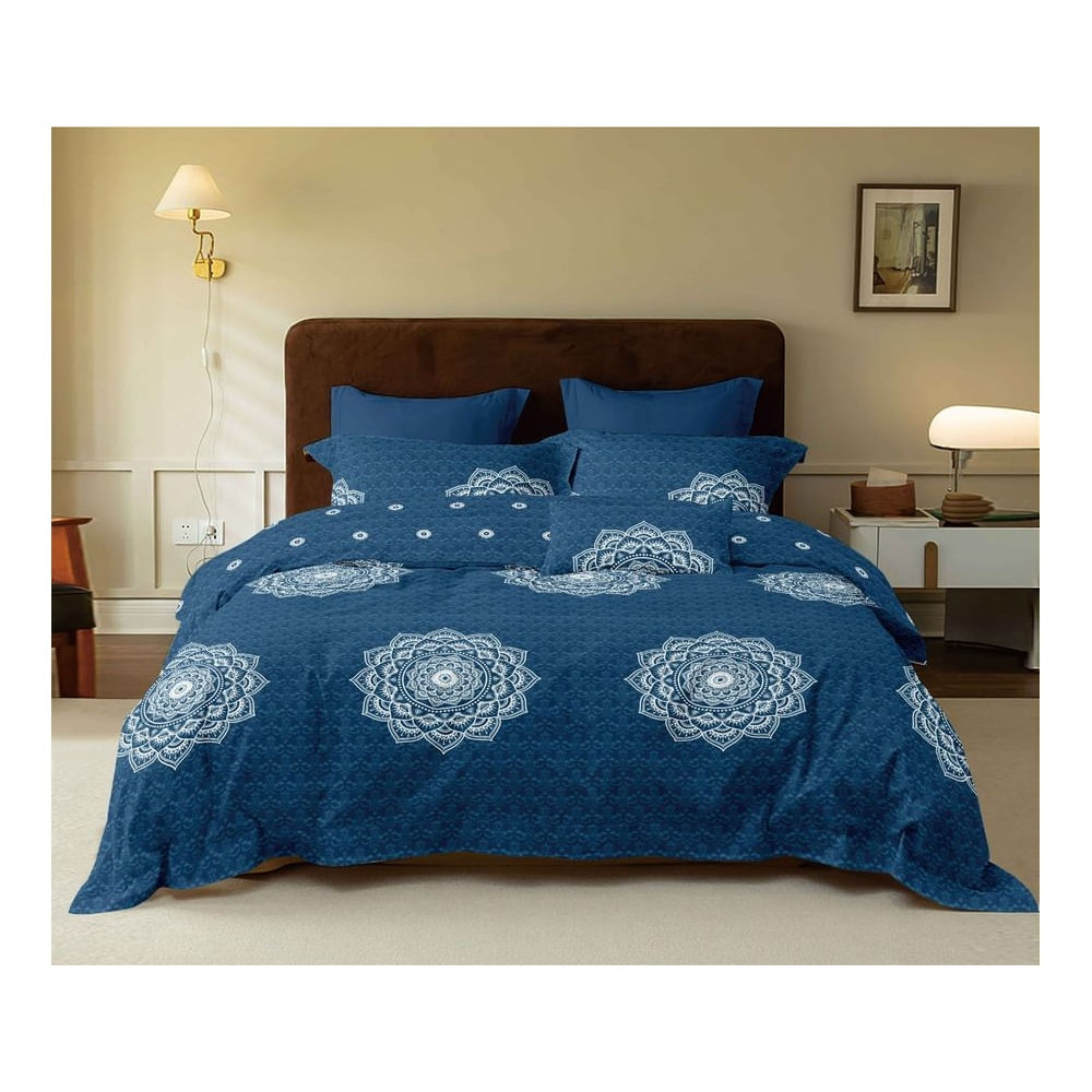 CUBRECAMA 5 PIEZA TELA CON TELA ACOLCHADO 2 PLAZAS PREMIUN Azul Claro