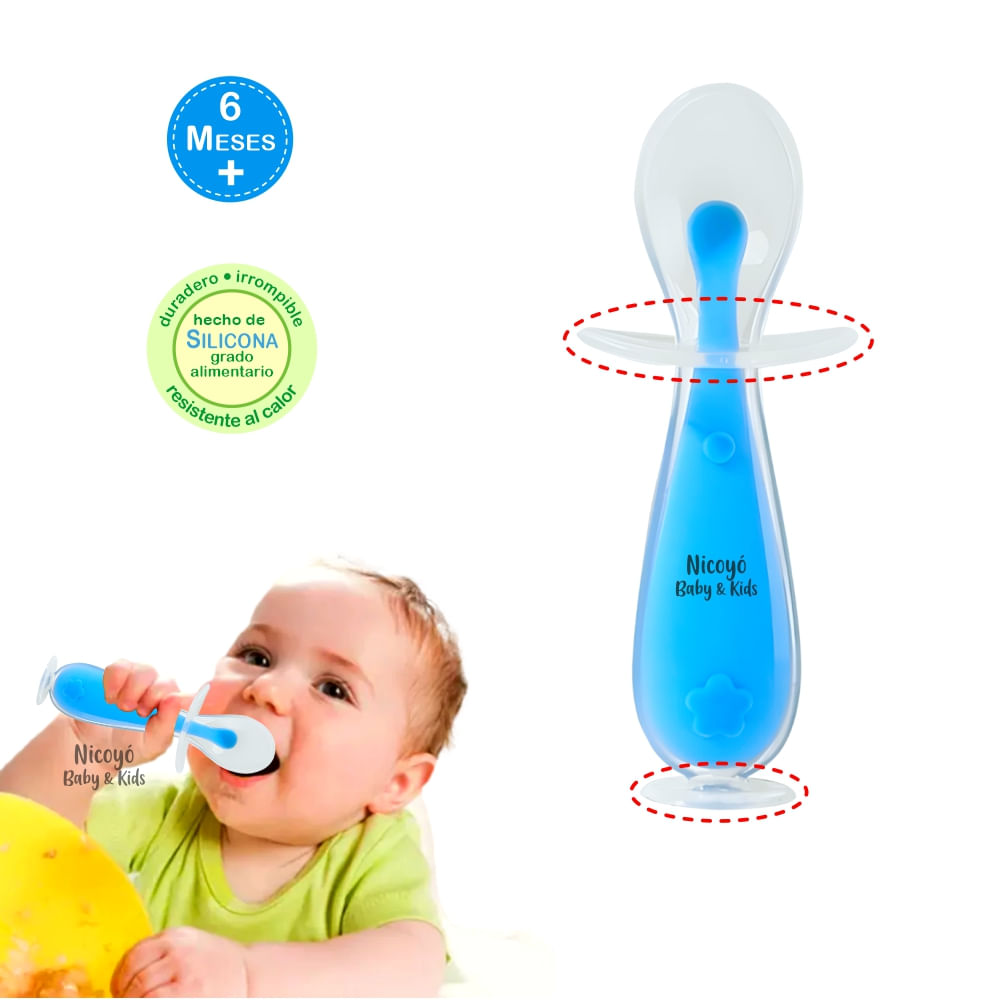 Cuchara con Tope de Seguridad para Bebés - Celeste